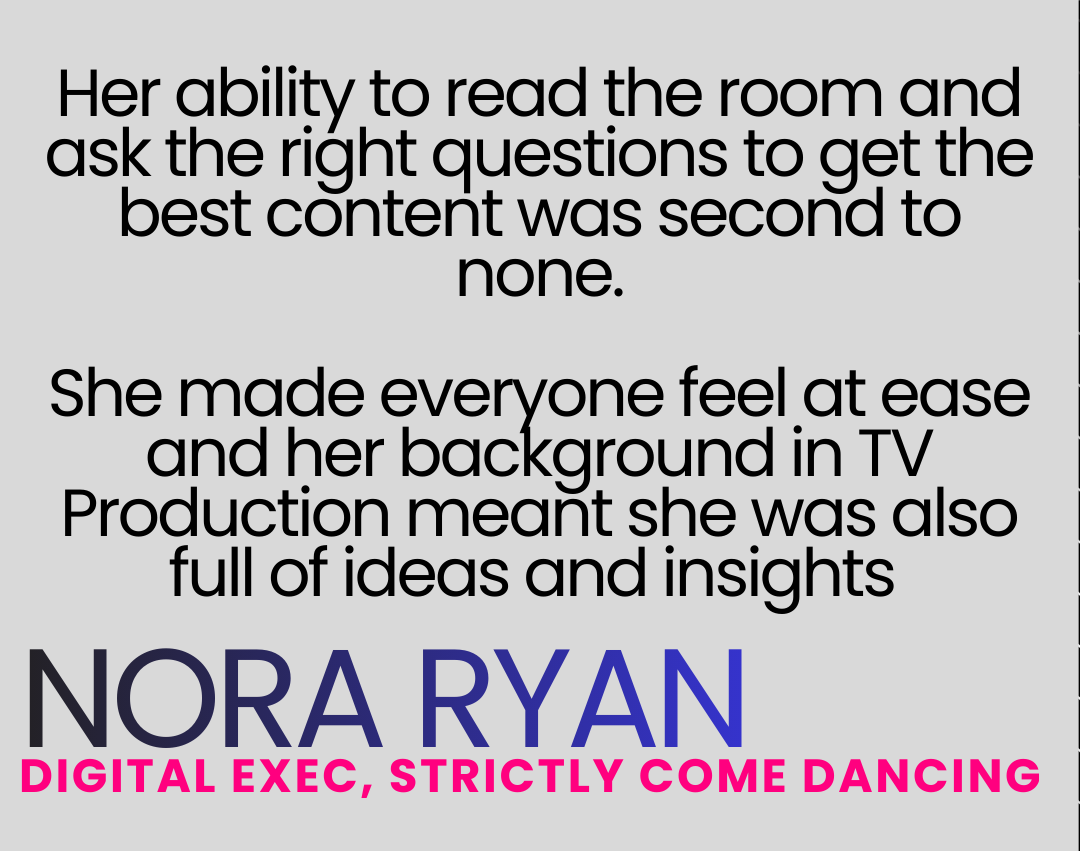 Nikki was our digital Presenter on Strictly for 6 series and her ability to read the room and ask the right questions to get the best content was second to none.